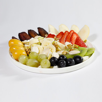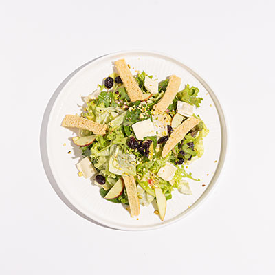 Brie, mix green, walnuts, green & red apples, cranberry, pomegranate, pistachio, baby rocca, bread sticks; fig sauce.