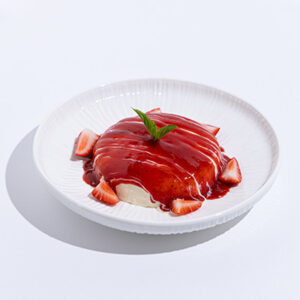 Panna cotta topped with strawberry coulis 9$